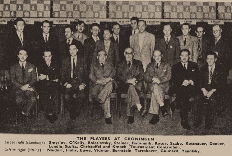 | 1. Botvinnik 11½; 2. Euwe 10½; 3.-4. Smyslov, Szabó 8½; 5.-7. Najdorf, Flohr, Denker 7½; 8.-10. Stoltz, Tartacover, Kottnauer 7; 11. Boleslavsky 6½; 12. Lundin 6; 13. Kotov 5½; 14. Guimard 5; 15.-17. Yanofsky, Bernstein, Steiner 4½; 18. Christoffel 4; 19.-20. Vidmar, O'Kelly de Galway 3½; | |||||||||
