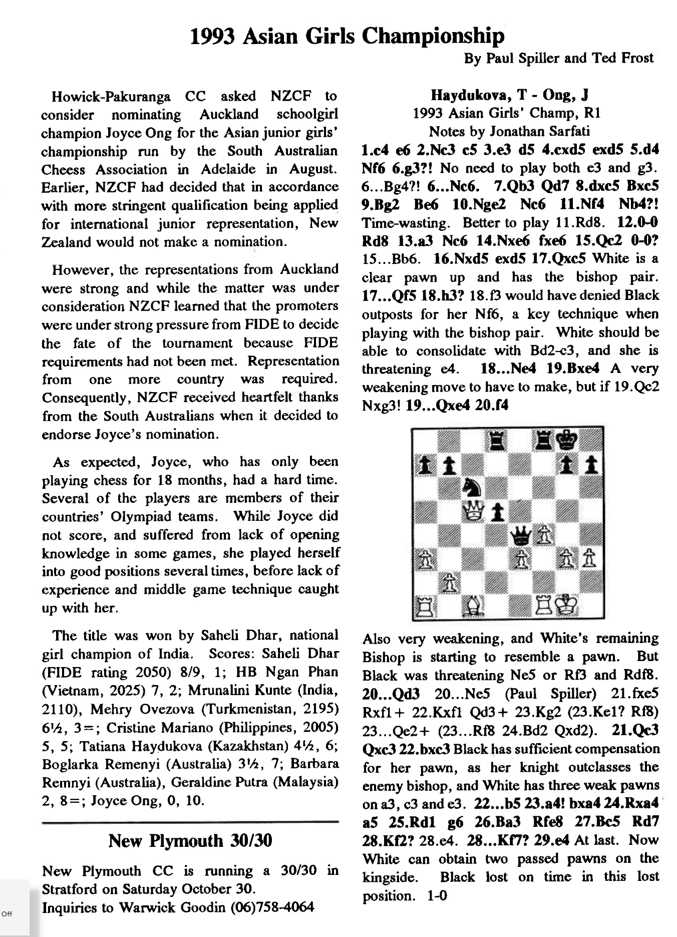| Adelaide | 1993 | Dhar, Saheli | RR | 10 | 45 | ||||||||