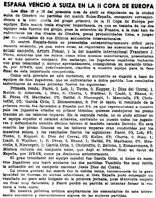 España venció a Suiza en la II Copa de Europa - artículo de Román Tóran [ES]